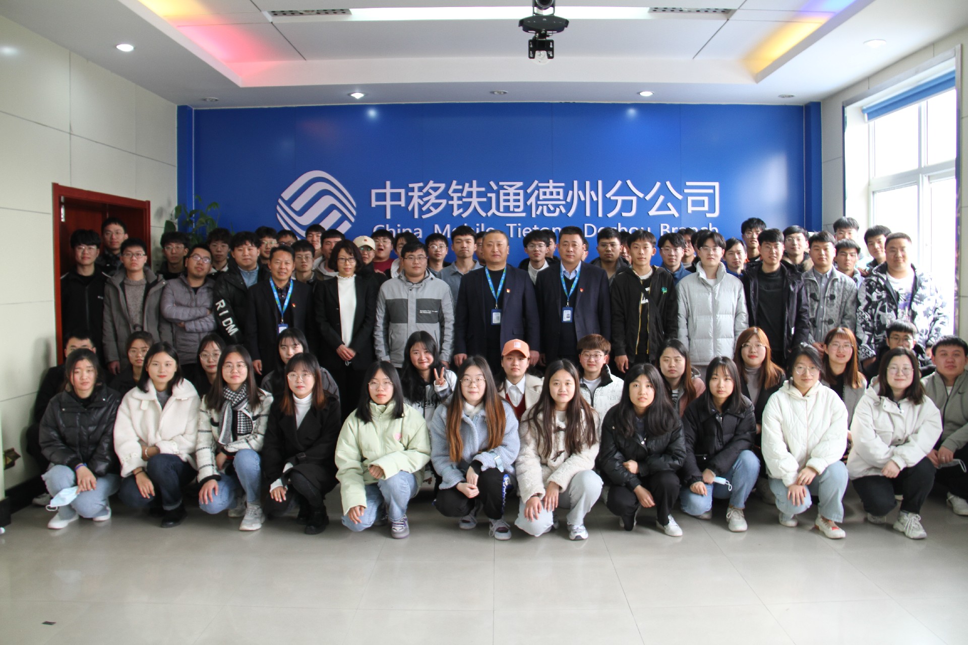 中移铁通德州分公司总经理与全体实习生合影