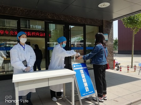 为科学、规范、有序的做好复学前后的疫情防控工作,提高学院全体教职工疫情防范和应急处置能力,保障学院全体师生的身体健康和生命安全,依据《山东省高等学校突发新冠肺炎疫情应急处置办法》、《山东华宇工学院疫情防控应急处置演练实施方案》,根据学校疫情防控处置工作领导小组要求,2020年5月6日学院举行疫情防控演练——学生进入公寓楼以及在宿舍内自测体温异常。