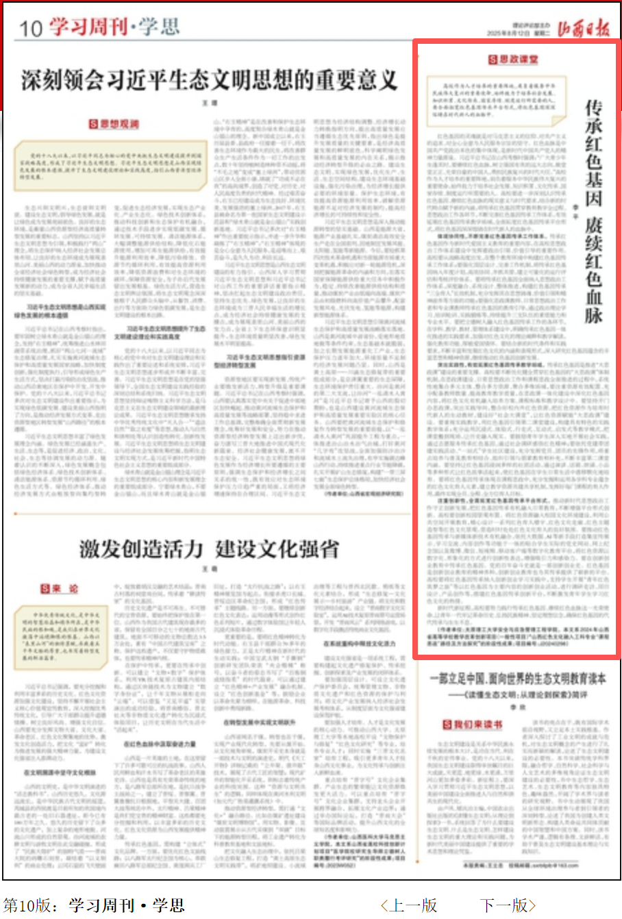 《山西日报》理论版刊发威尼斯官网党委书记李平署名文章:《传承红色基因 赓续红色血脉》