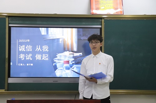 2021-2022学年第二学期期末考试即将来临,为弘扬诚信精神,增强同学们的诚信意识,鼓励大家以积极乐观,诚实守信的态度去面对期末考试。ky开元集团官网于2022年6月5日在22#401教室举行“诚信考试,从我做起”演讲比赛,参加比赛的有2020级及2021级共12名同学。
